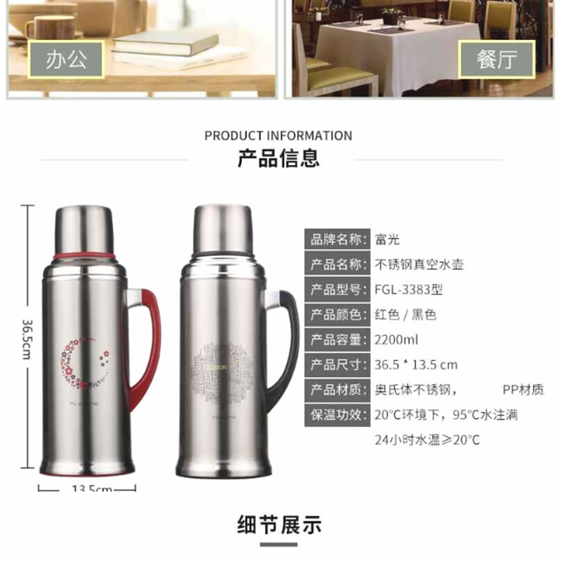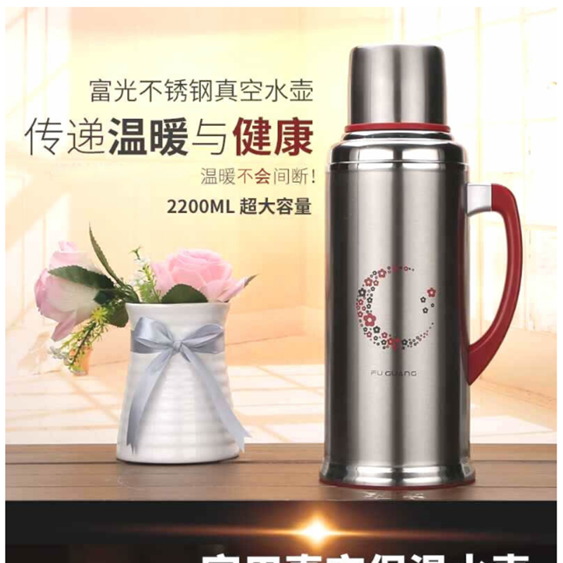 富光 3383 . 真空熱水瓶保溫瓶暖水瓶家用暖壺保溫壺開水瓶全不銹鋼內(nèi)膽 2200ml(紅色)