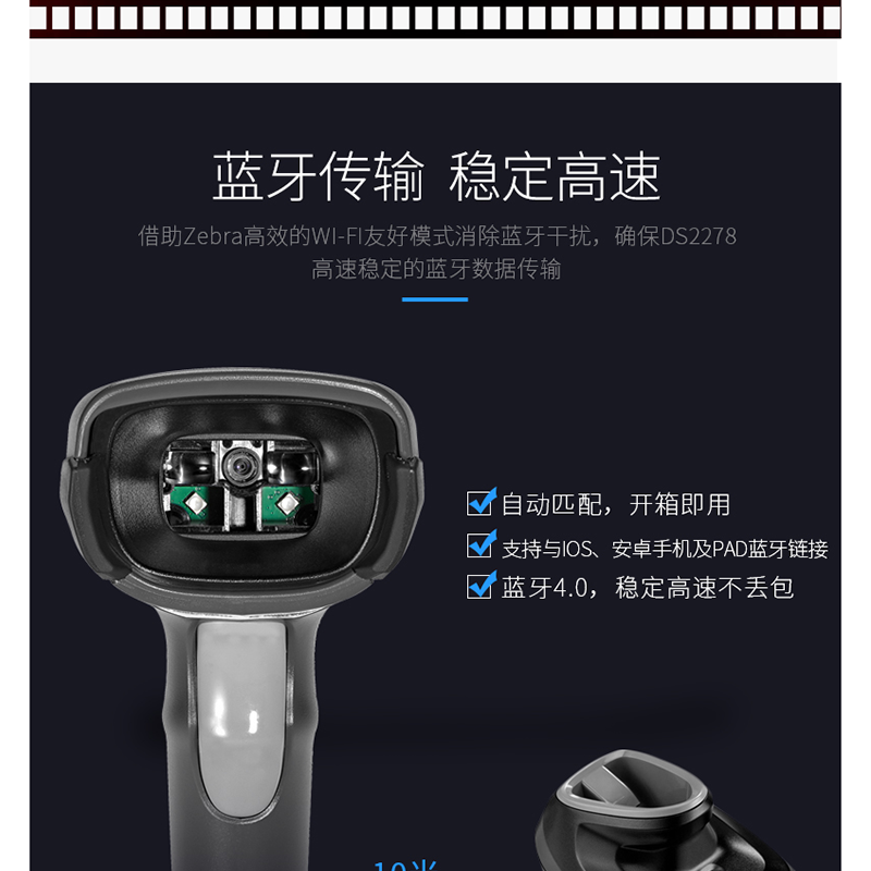 斑馬(ZEBRA) DS2208 二維碼/條碼掃描槍 微信支付寶收銀 (黑色帶架套裝)