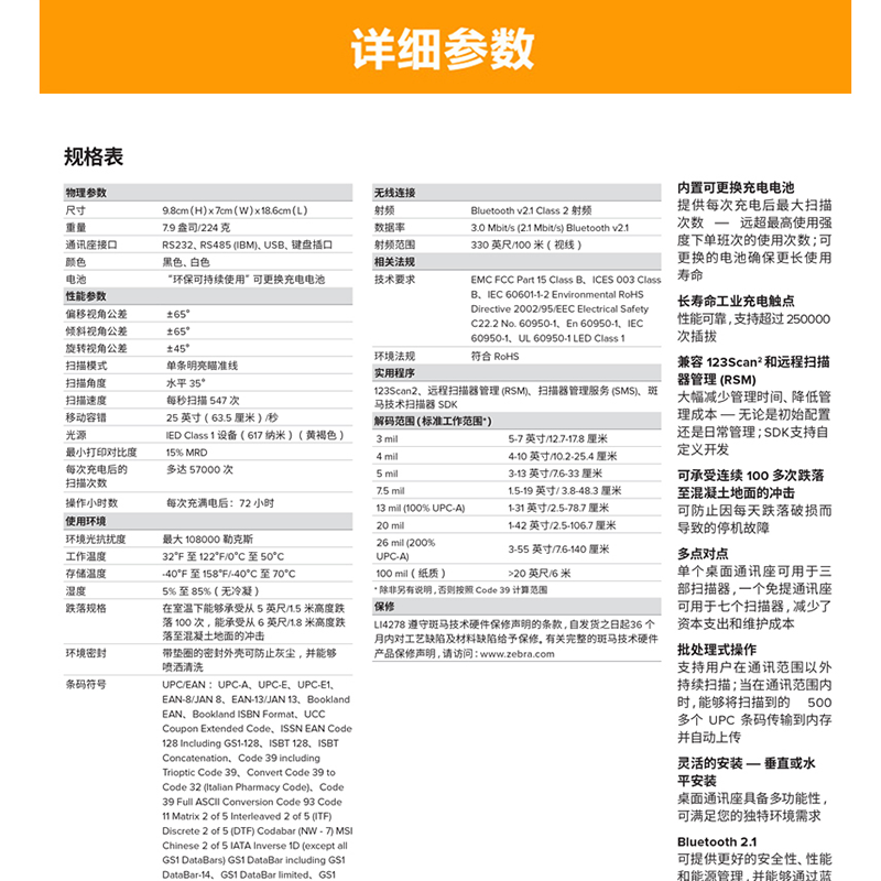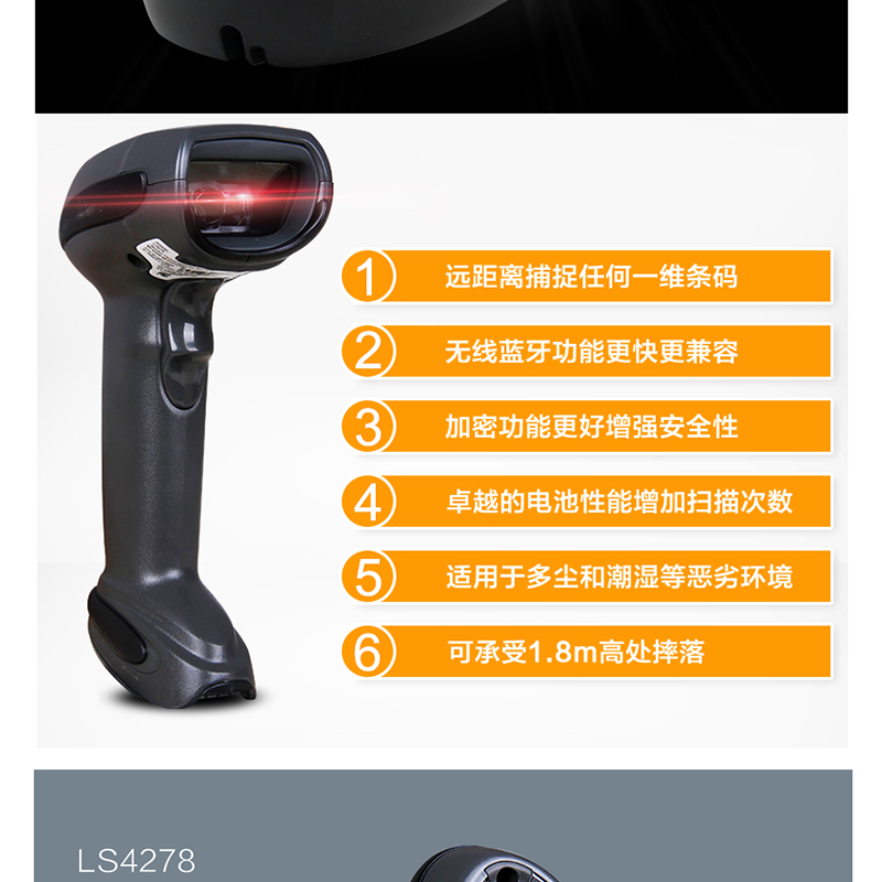 斑馬(ZEBRA) LS4278 無線掃描槍一維條碼掃描器 (單線激光掃描)