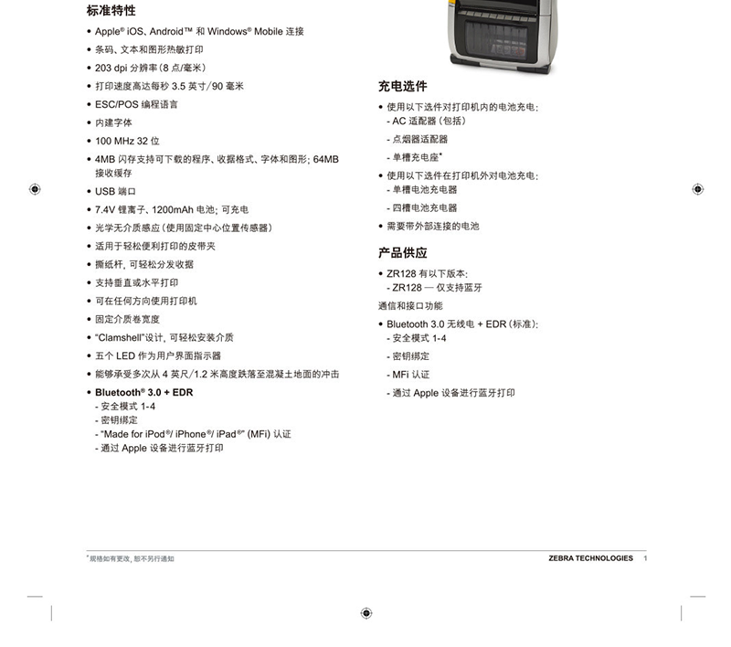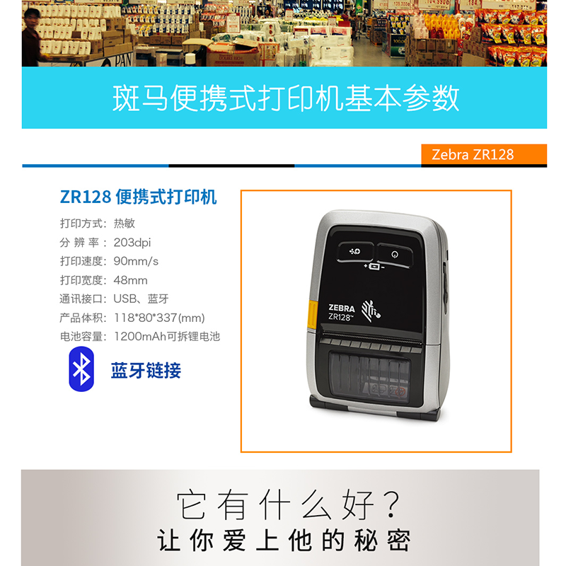 斑馬(ZEBRA) ZR128 便攜式條碼打印機 藍牙無線標簽打印機 (ZR128)