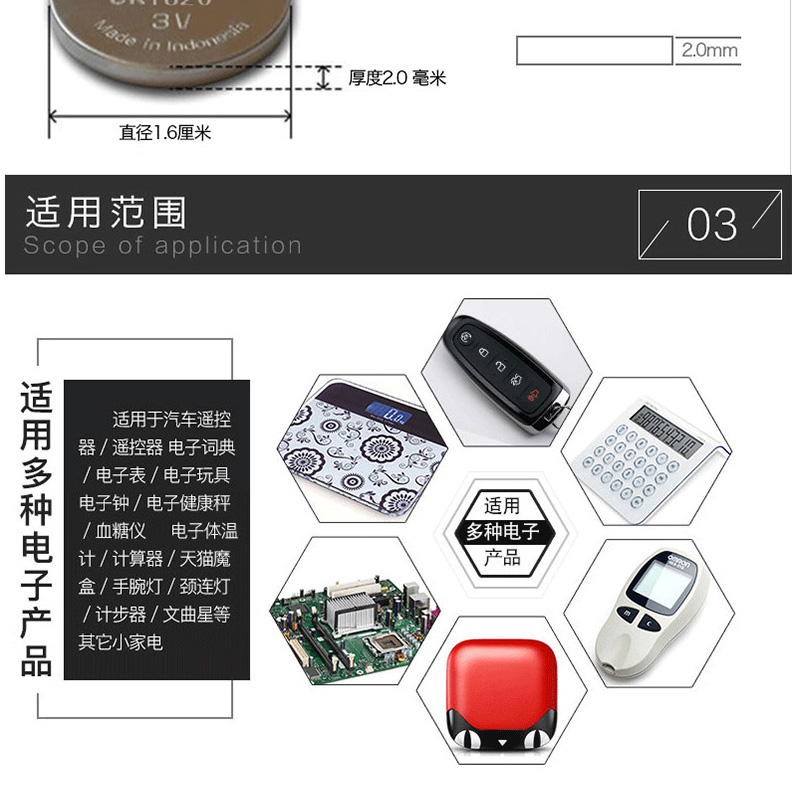 • CR1220 CR1616 CR1620 CR1632 CR2016 CR2025 CR2032