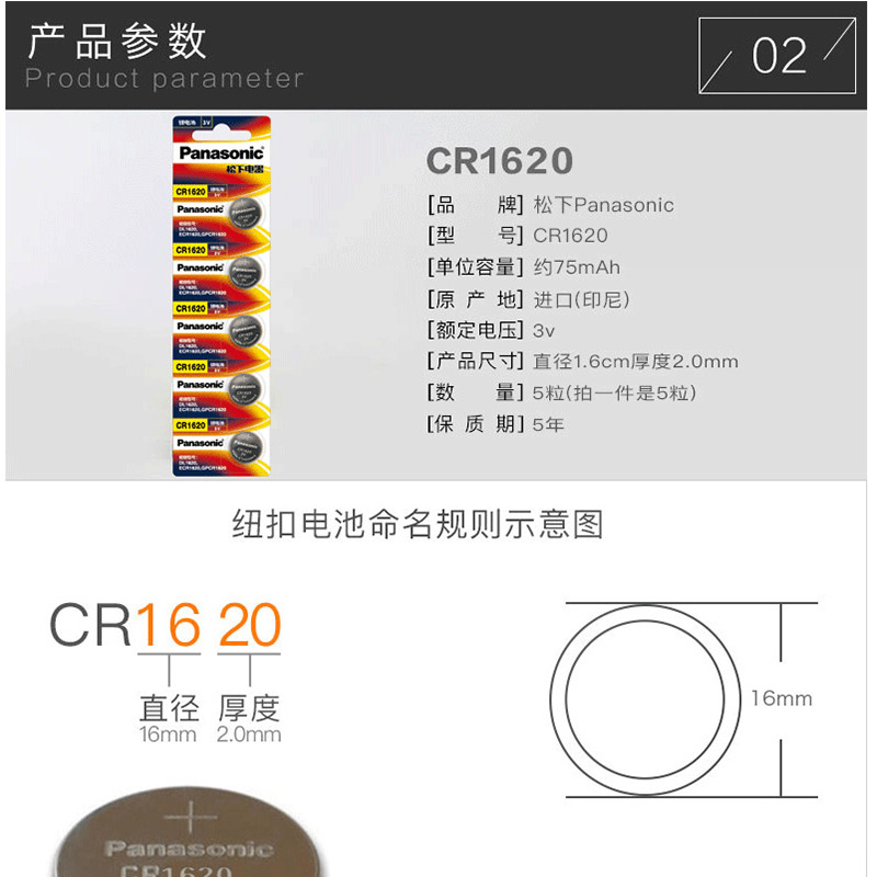 松下(panasonic) 進(jìn)口紐扣電池電子5粒(CR1620)