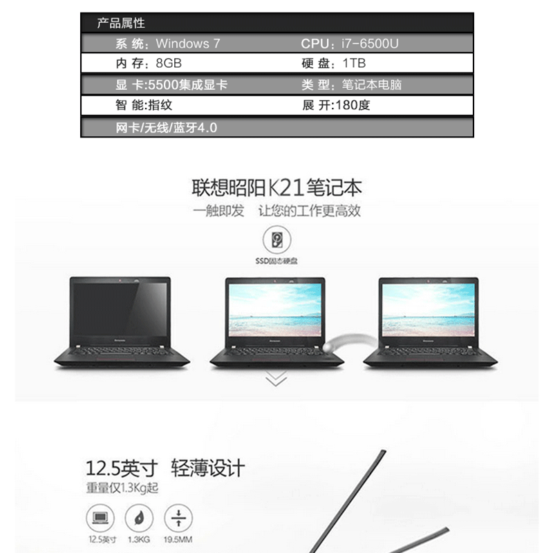 聯(lián)想(Lenovo) 昭陽(yáng)K20-80 商務(wù)筆記本電腦(i5-5300U)12.5英寸 4G內(nèi)存 500G硬盤 集成顯卡