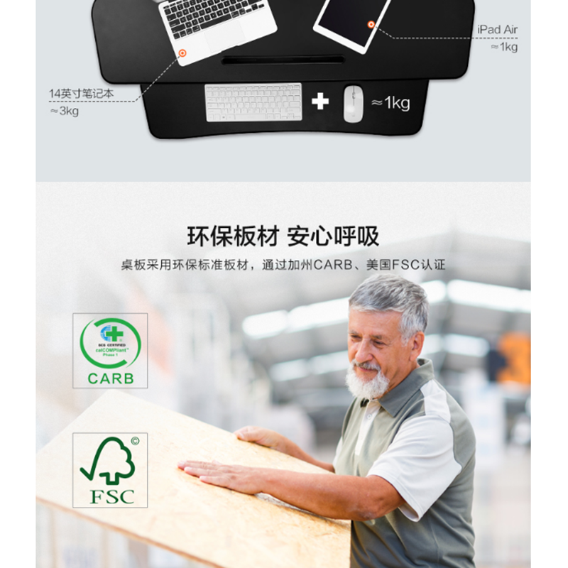 樂歌(Loctek) M2 站立式辦公升降臺/升降桌 折疊移動筆記本工作臺 (黑色)