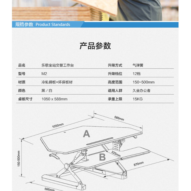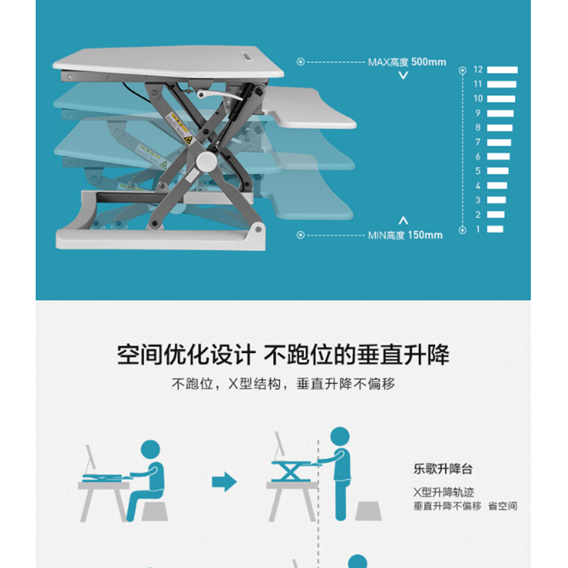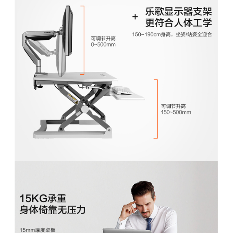 樂歌(Loctek) M2 站立式辦公升降臺(tái)/升降桌 折疊移動(dòng)筆記本工作臺(tái) (白色)