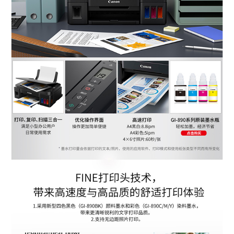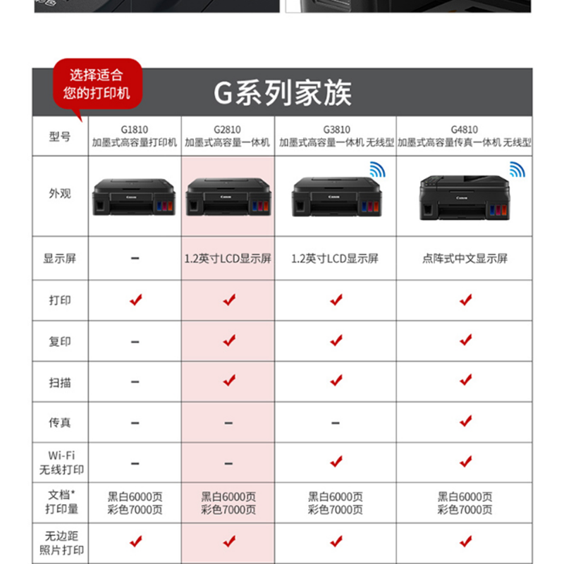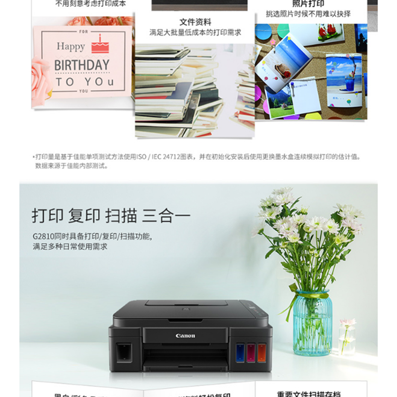 佳能(Canon) G2810 加墨式 高容量噴墨打印一體機(jī) (打印復(fù)印掃描)