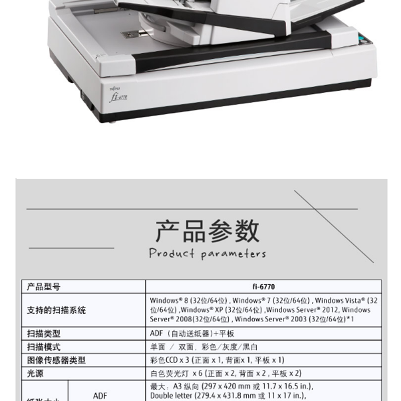 富士通(Fujitsu) Fi-6770 平板+饋紙式掃描儀 高速雙面自動進(jìn)紙 (90頁180面/分鐘,雙平臺)