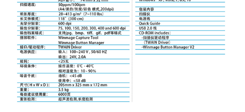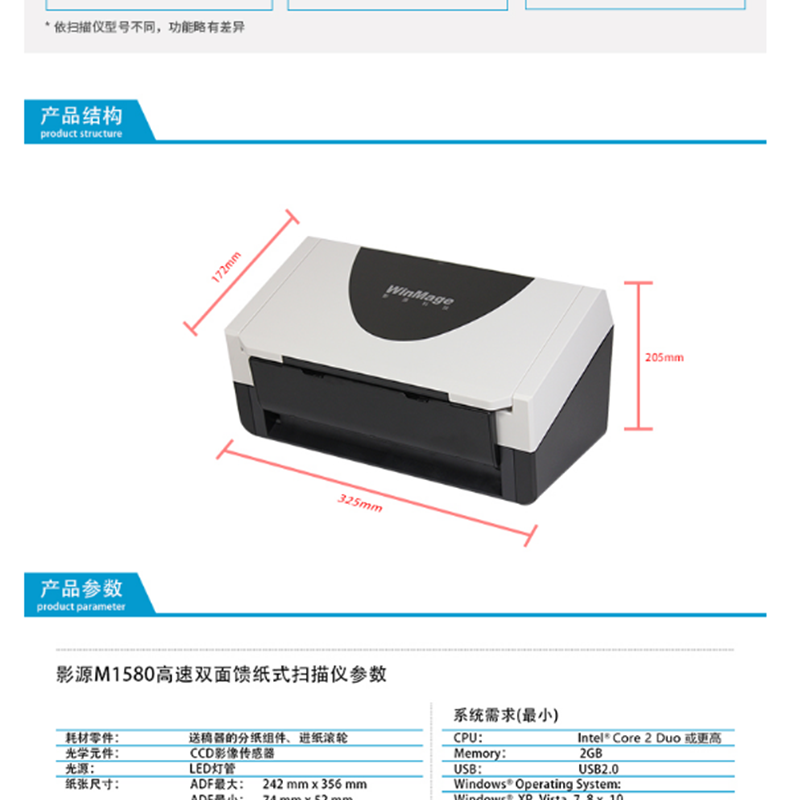 影源(WinMage) M1580 A4饋紙式掃描儀 高速文檔 雙面自動進紙 (50頁100面/分鐘)