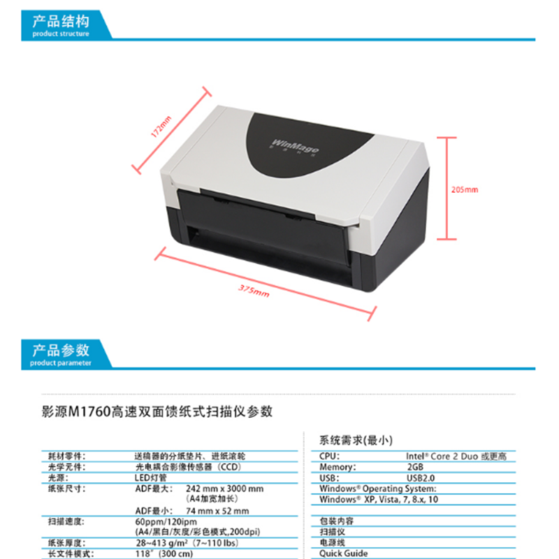 影源(WinMage) M1760 A4饋紙式掃描儀 高速文檔 雙面自動(dòng)進(jìn)紙 (60頁120面/分鐘)