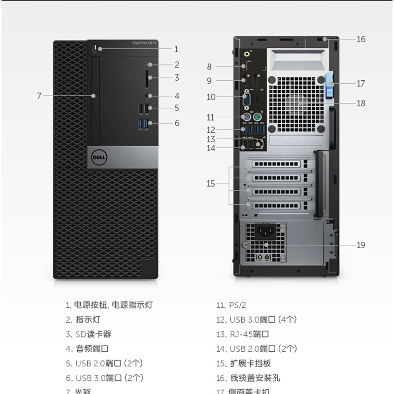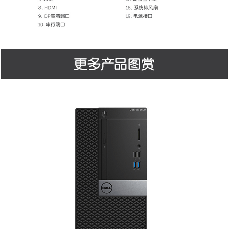 戴爾(DELL) 5050MT I5-7500 四核 企業(yè)商用辦公臺式電腦(4G/1T/2G)
