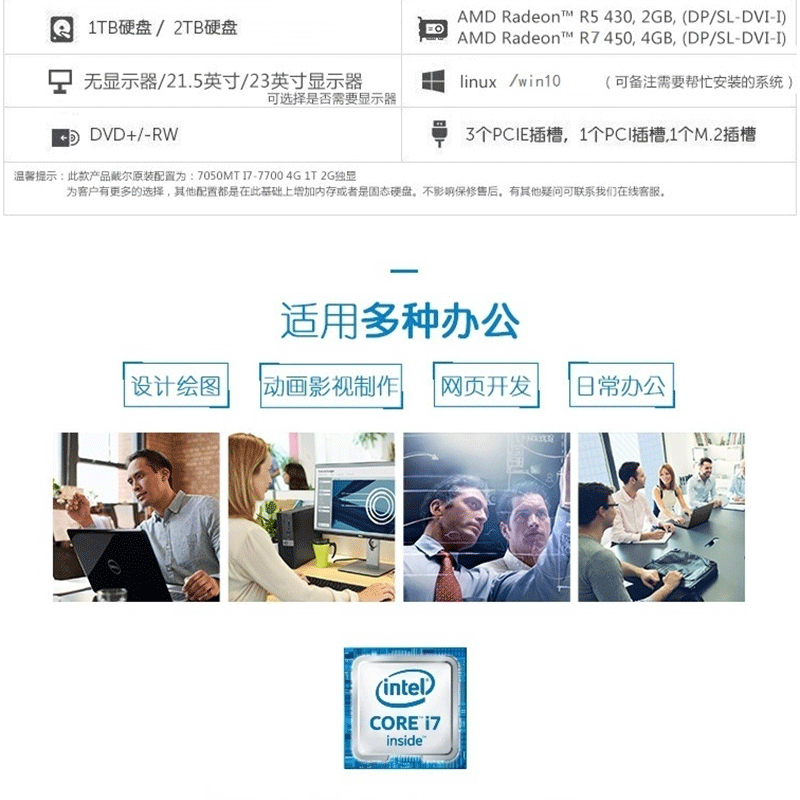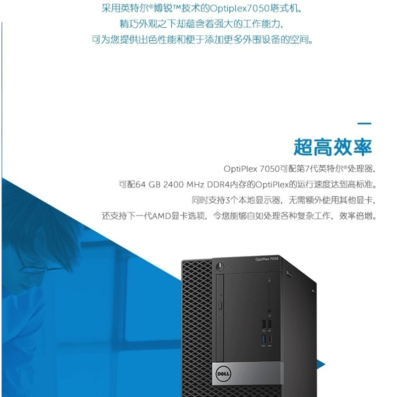戴爾(DELL) 7050MT I7-7700四核 企業(yè)商用辦公臺式電腦(4G/1T/2G)