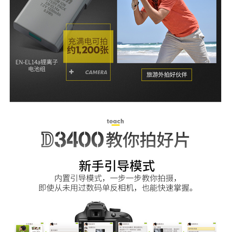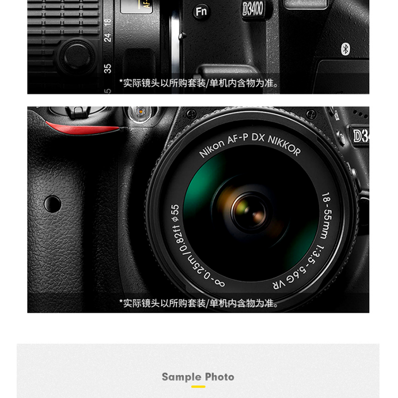 尼康(Nikon) D3400 入門單反數(shù)碼照相機(jī)(AF-P DX 18-55mm f3.5-5.6G VR +AF-S DX 35mm f/1.8G) (雙鏡頭套機(jī))