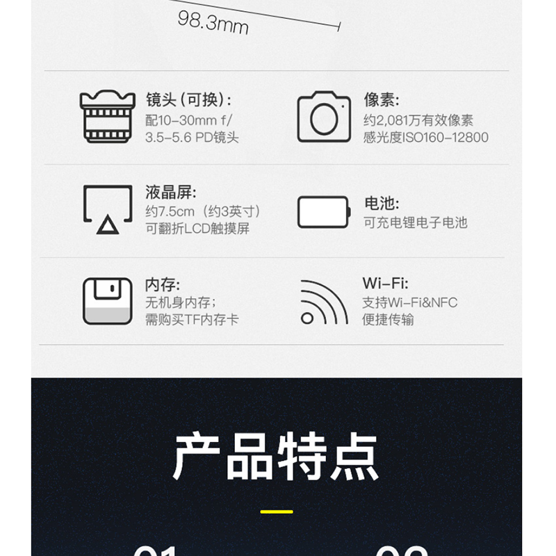 • 10-100mm f/4-5.6鏡頭套機(jī)銀色 10-100mm f/4-5.6鏡頭套機(jī)白色 J5+1 10-30mm f/3.5-5.6 PD鏡頭套機(jī)銀色