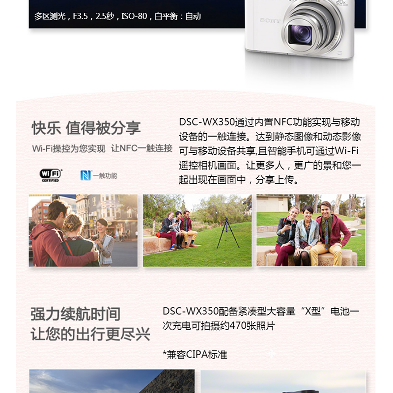 索尼(SONY) DSC-WX350 便攜數(shù)碼相機/照相機/卡片機(黑色)
