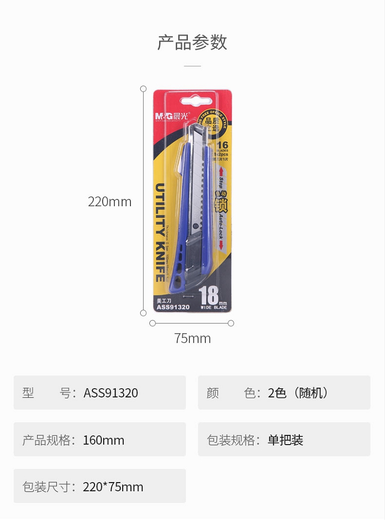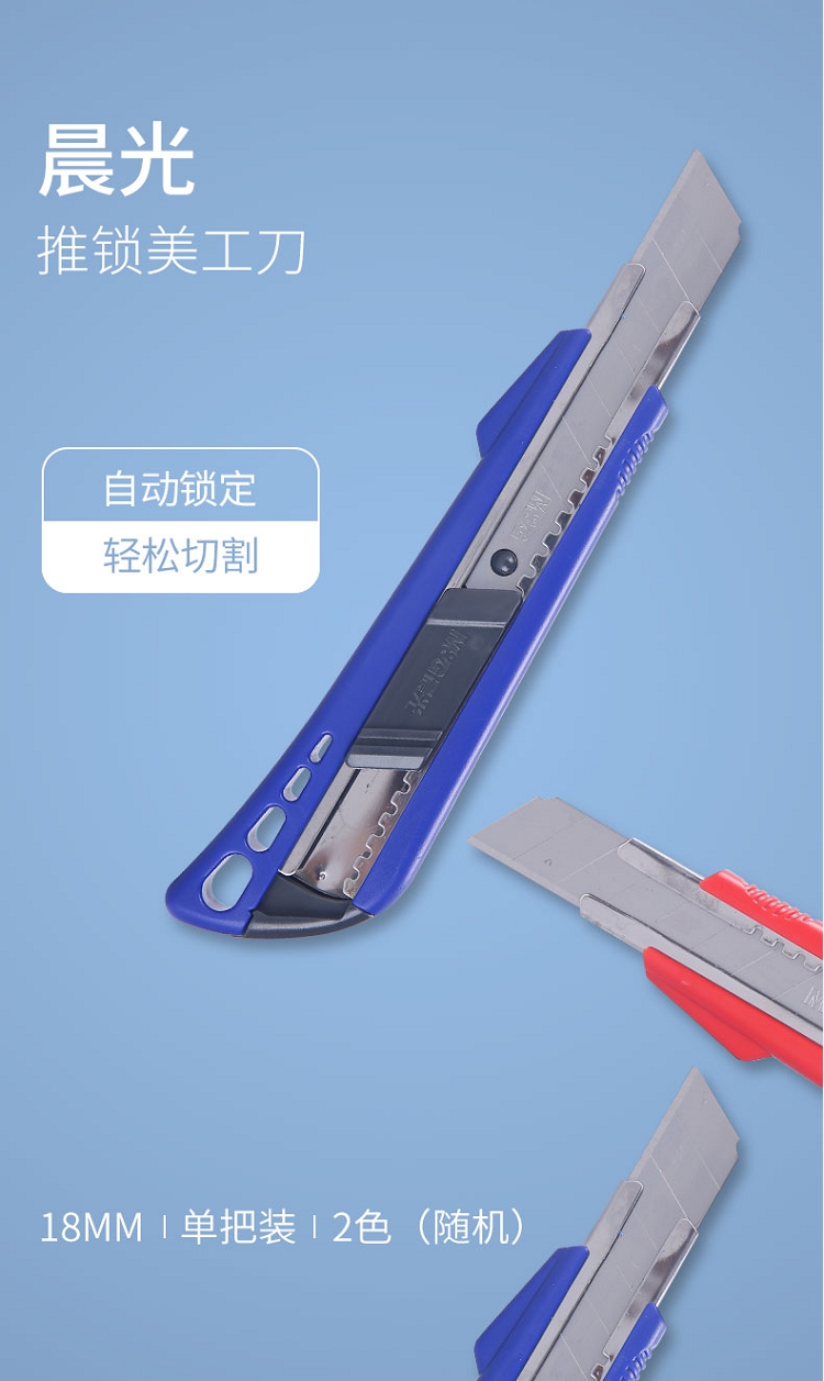 晨光(M&G) ASS91320 自動鎖安全美工刀 鋒利裁紙刀 顏色隨機