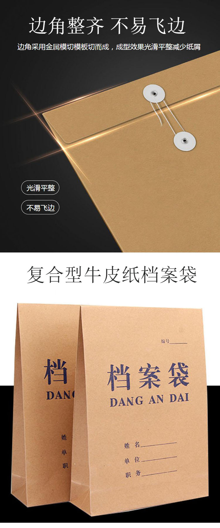 國產(chǎn) 50只裝 定制A4牛皮紙檔案袋加厚200g 50個/包 (5mm)