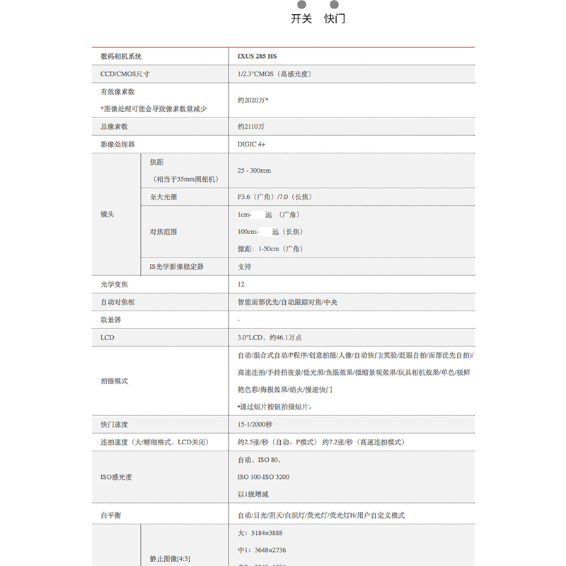 佳能(Canon) IXUS 285 HS 數(shù)碼相機(jī)(黑色)