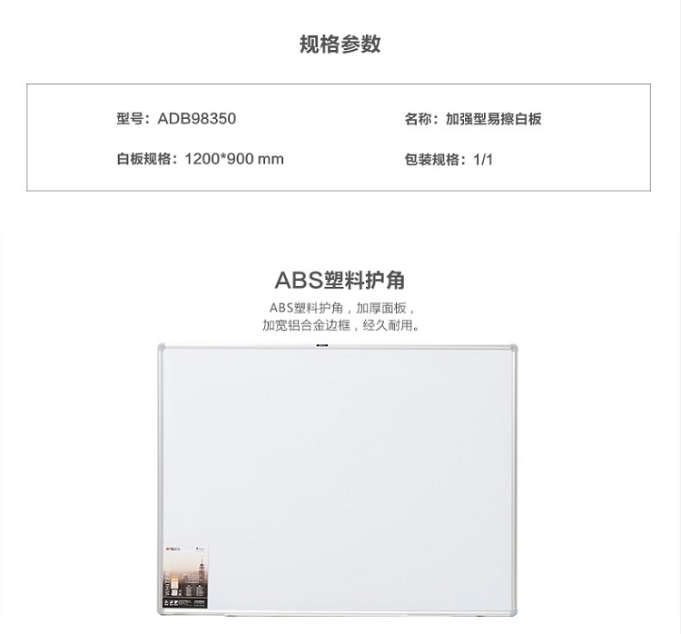 晨光(M&G) ADB98350 加強(qiáng)型易擦單面白板 不帶架子1200*900mm