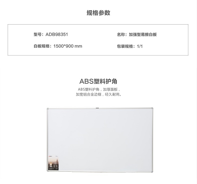晨光(M&G) ADB98352 加強型易擦單面白板 不帶架子1800*900mm