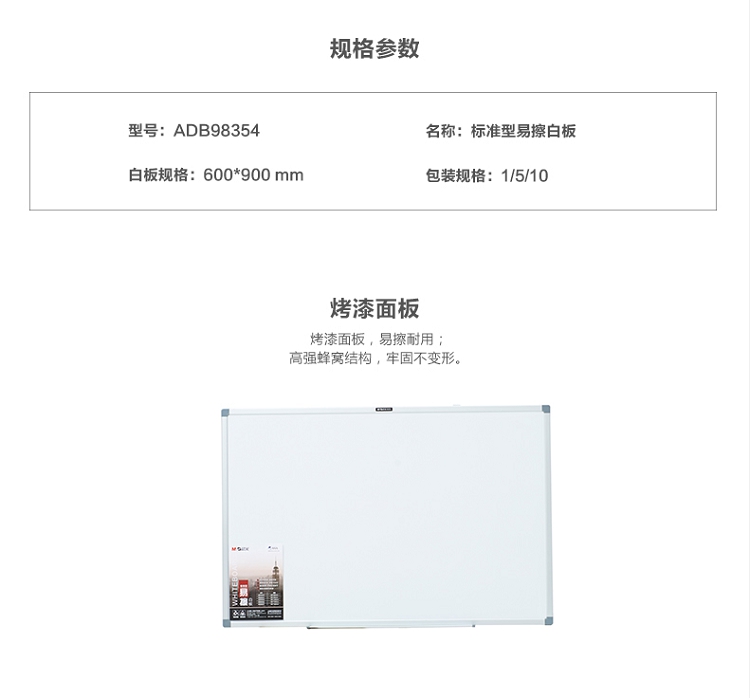 晨光(M&G) ADB98354 標(biāo)準(zhǔn)型易擦單面白板 不帶架子600*900mm