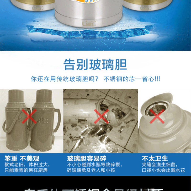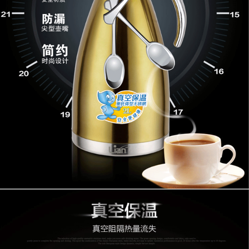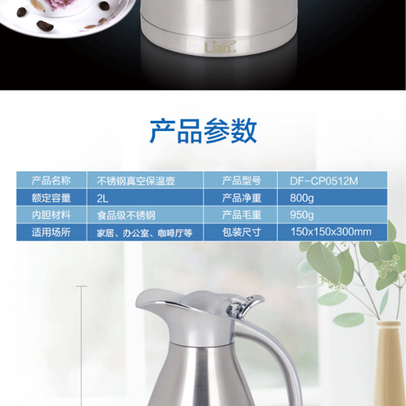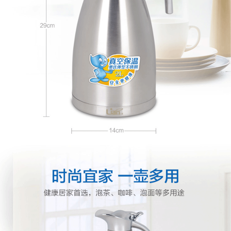 聯(lián)創(chuàng)(Lianc) DF-CP0512M 不銹鋼真空保溫壺/開水壺 超長保溫 2L(銀色)