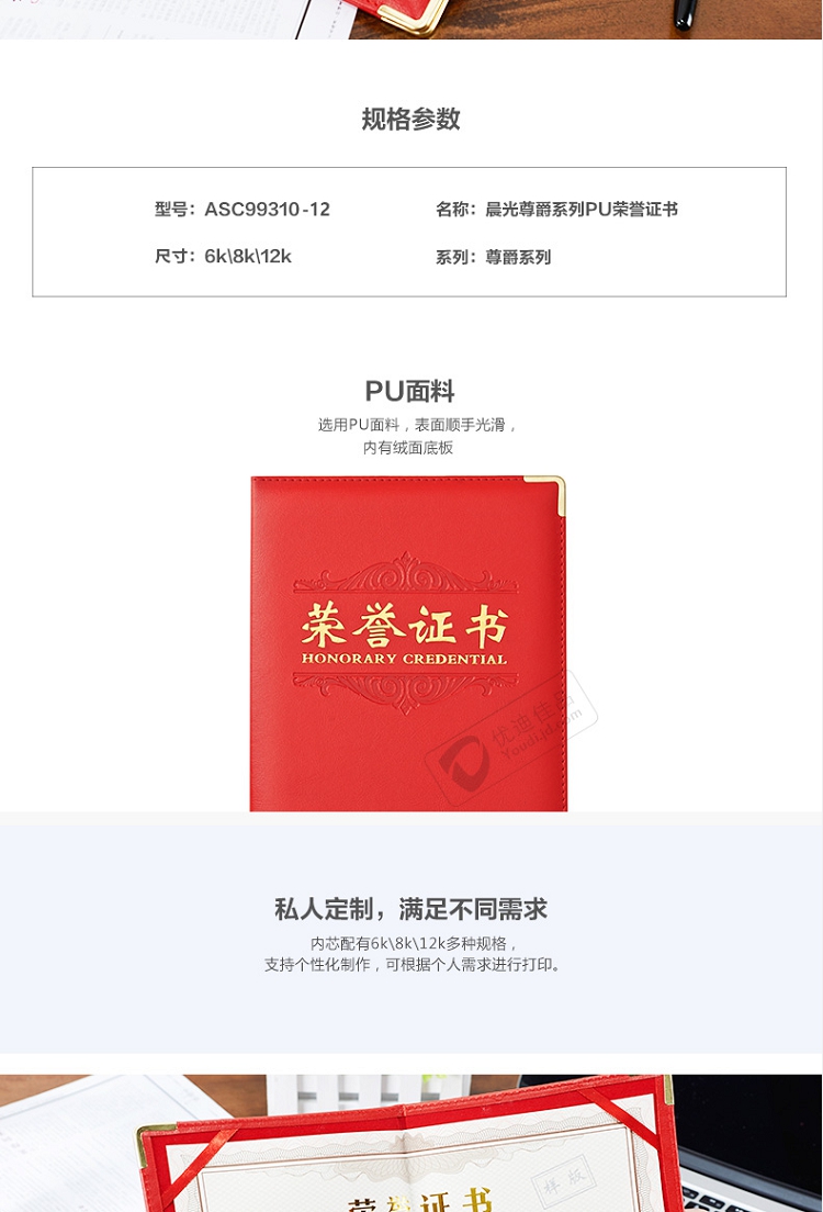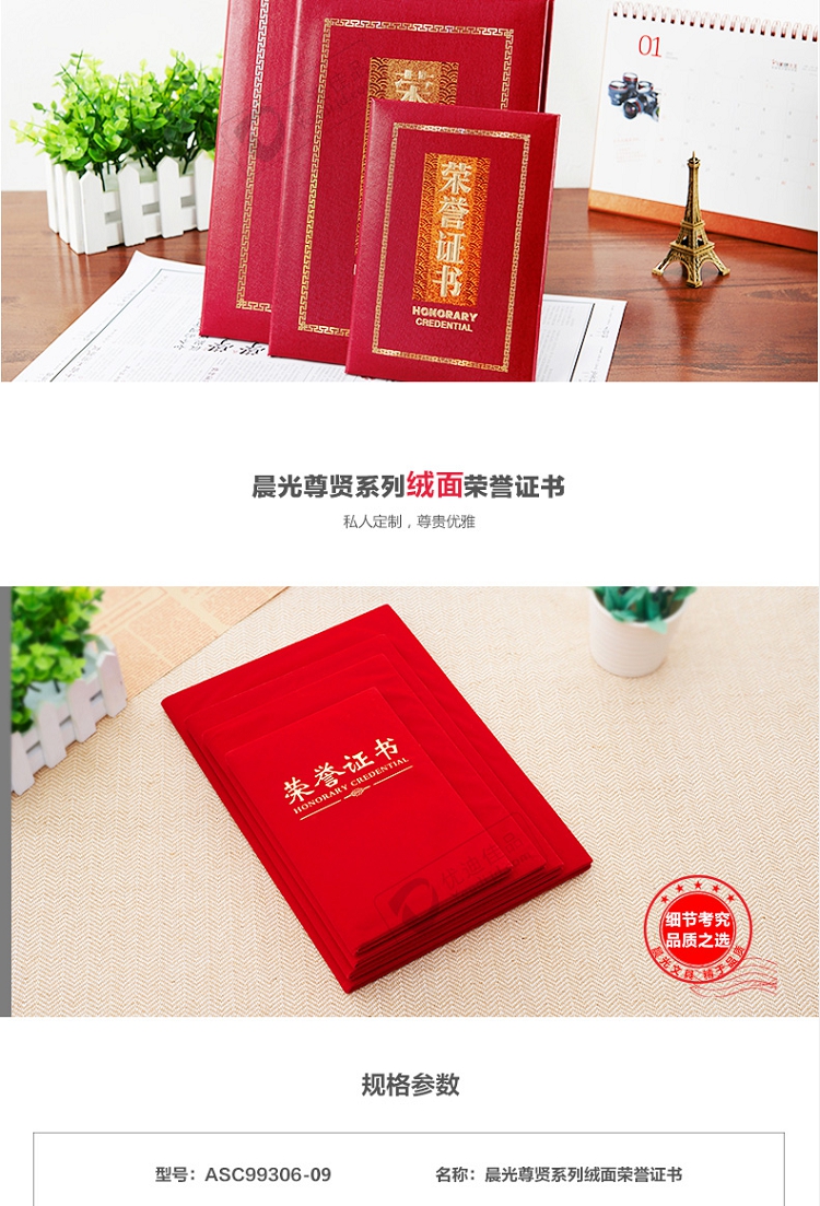 晨光(M&G) ASC99314 8K浮雕榮譽證書特種紙封面(合上尺寸178*255mm)