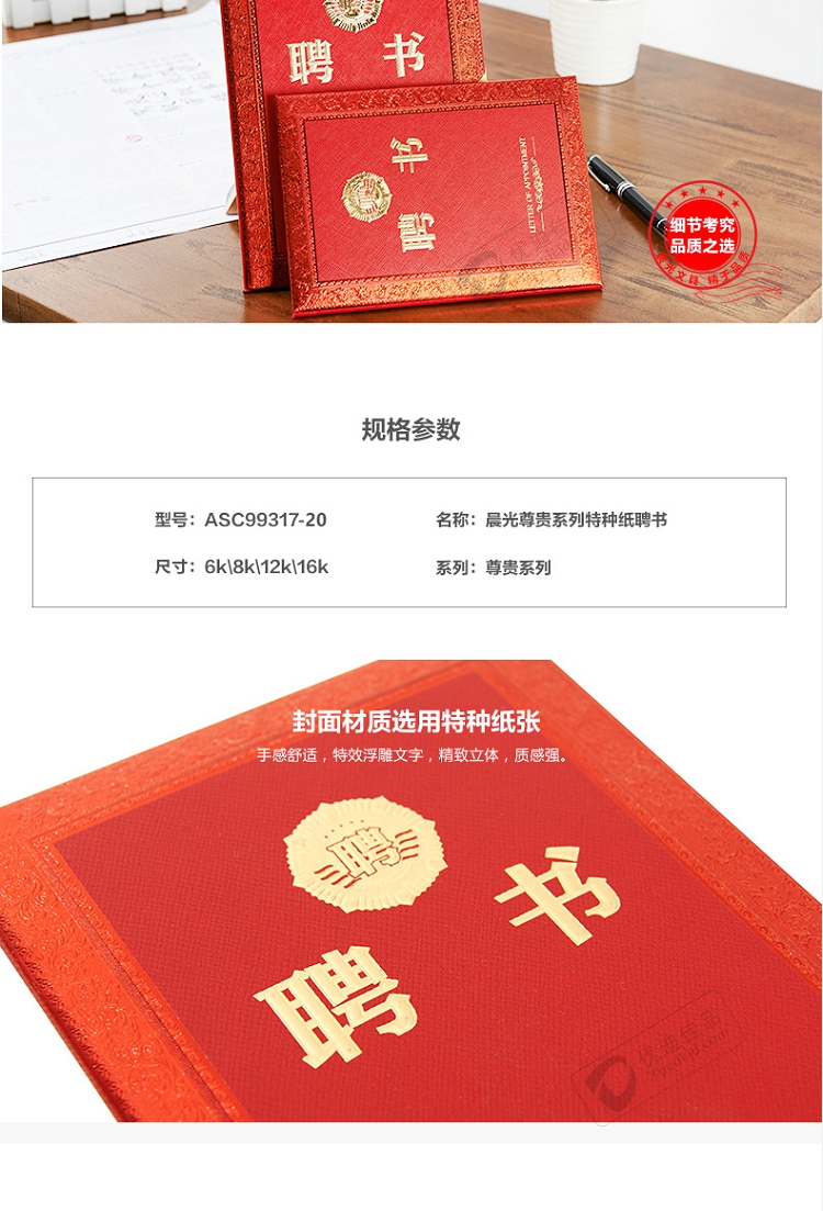 晨光(M&G) ASC99311 8k PU皮面榮譽(yù)證書 (合上尺寸178*255mm)