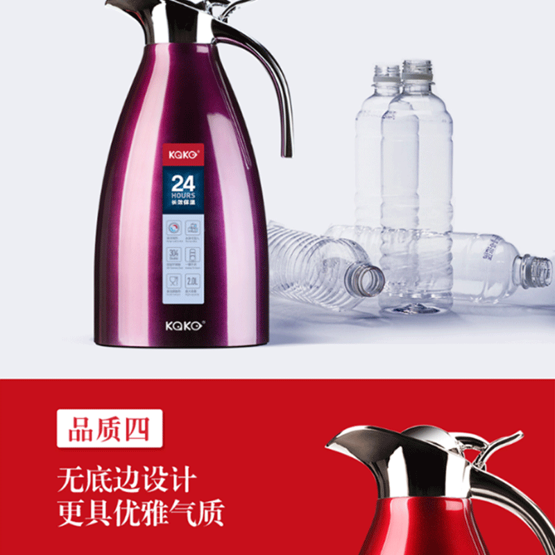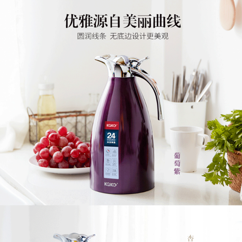 咔咔 KSC-2000-3 保溫壺家用暖壺大容量水壺?zé)崴繗W式暖瓶開水瓶保溫瓶2L 保暖壺咖啡壺(石榴紅)(葡萄紫)