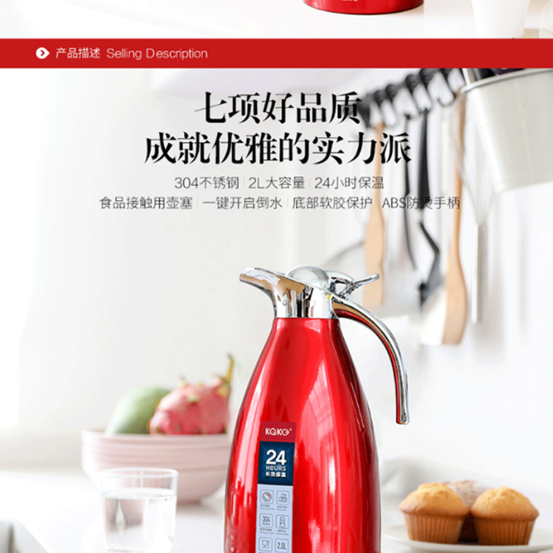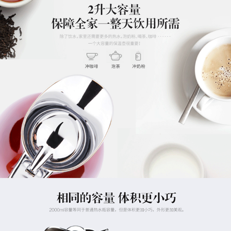 咔咔 KSC-2000-3 保溫壺家用暖壺大容量水壺?zé)崴繗W式暖瓶開水瓶保溫瓶2L 保暖壺咖啡壺(石榴紅)