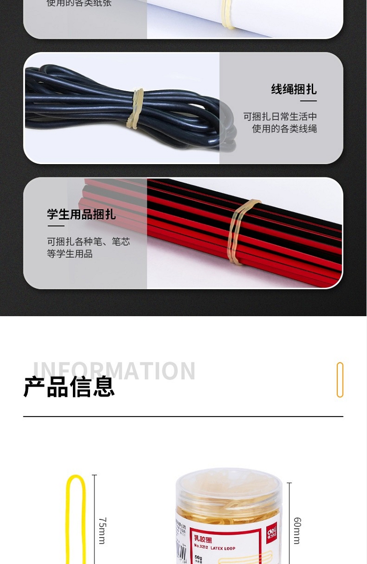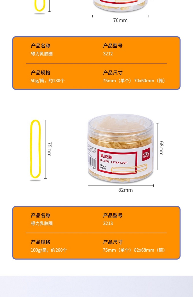 得力(deli) 3212 橡皮筋 乳膠圈 筒裝50g