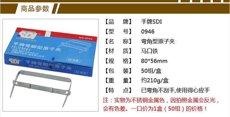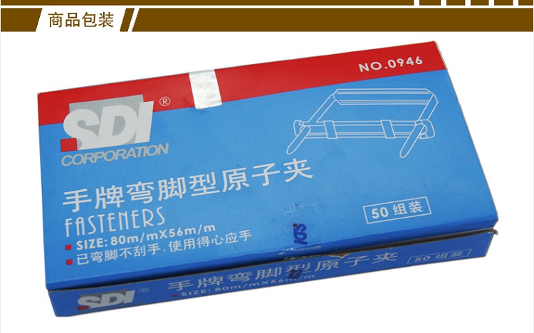手牌(SDI) 0946 金屬裝訂夾 彎角型原子夾 50組/盒