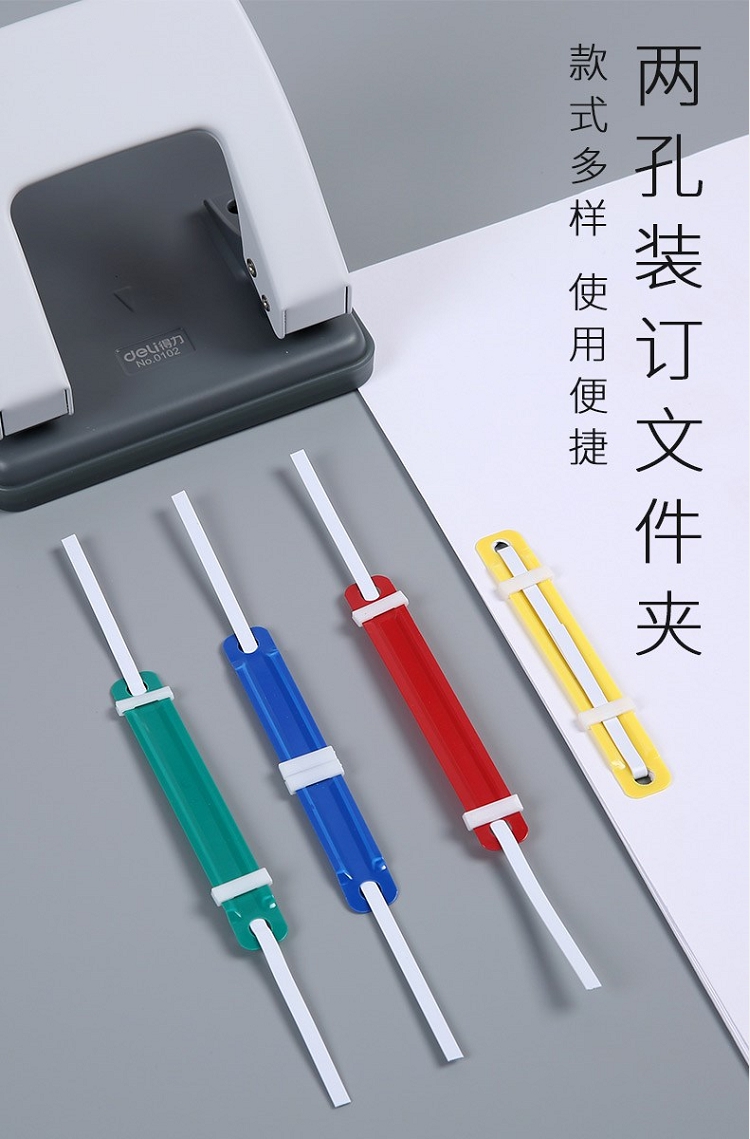 兩孔打孔機(jī)打孔后,用夾子穿過兩孔,固定起來