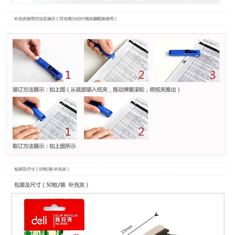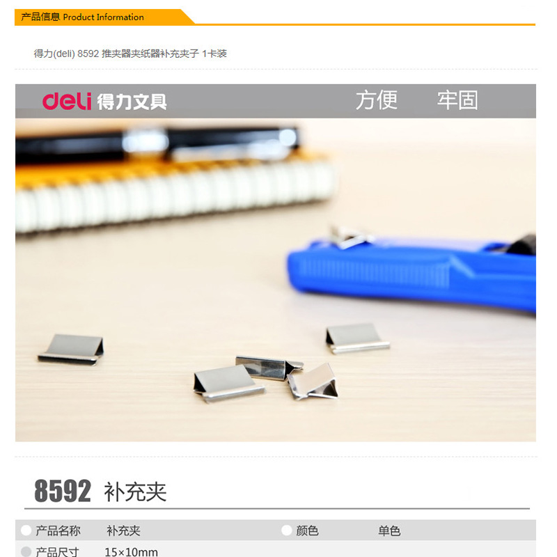 得力(deli) 8592 推夾器夾紙器 補(bǔ)充裝夾子 1卡裝