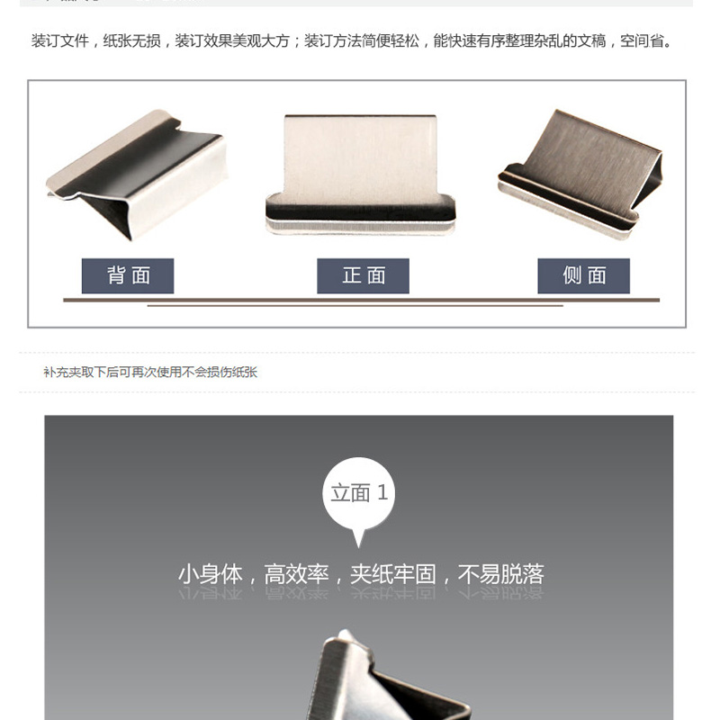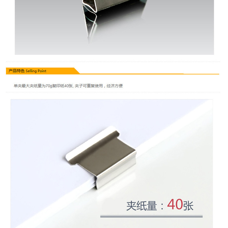 單夾最大夾紙量為70g復(fù)印紙40張, 夾子可重復(fù)使用,經(jīng)濟(jì)方便