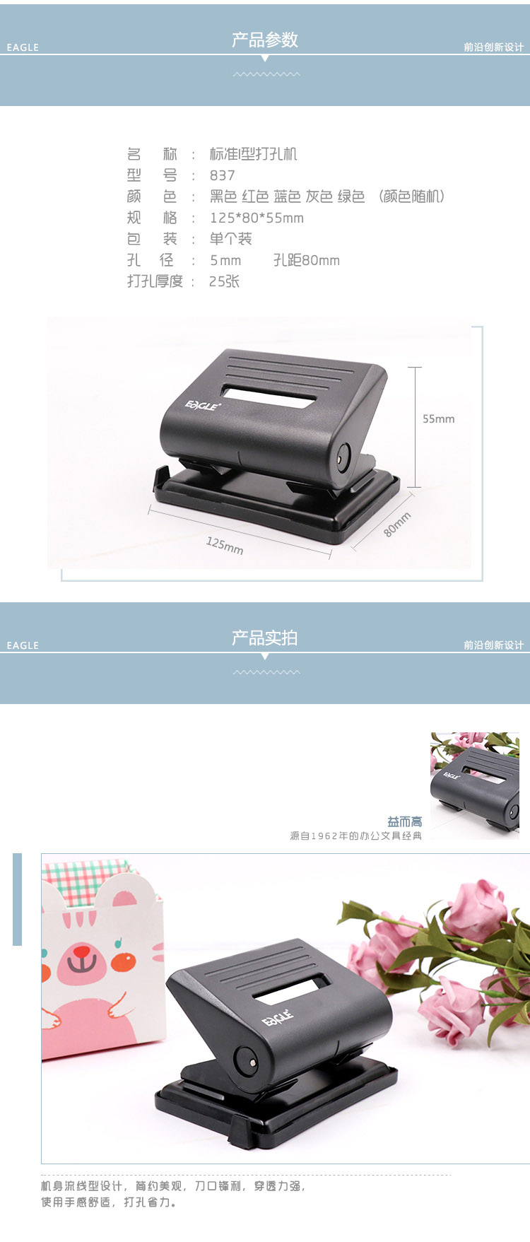 益而高(Eagle) 837 二孔打孔機(jī) 辦公型打孔器帶刻度(藍(lán)色)