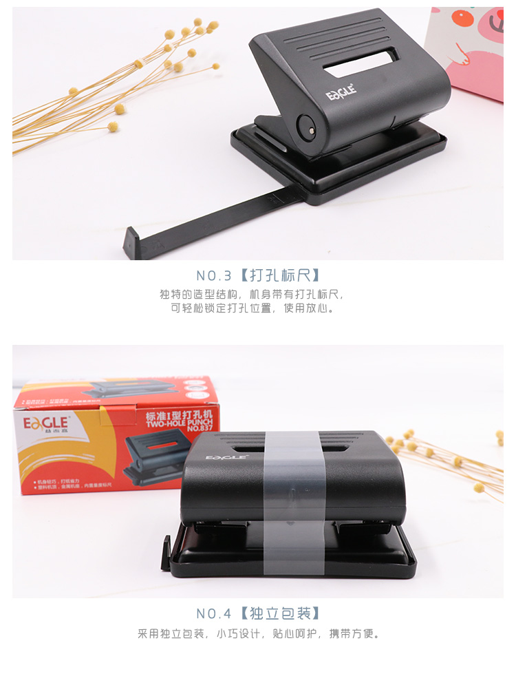 益而高(Eagle) 837 二孔打孔機 辦公型打孔器帶刻度(黑色)