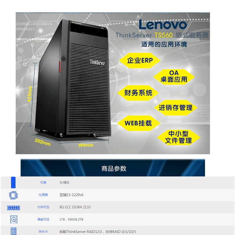 聯(lián)想(ThinkServer) TS550(E3-1245V5) 塔式服務(wù)器 8GB/2T/DVD/1路