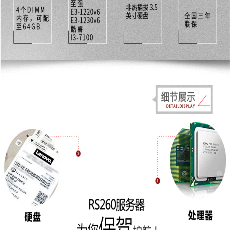 聯(lián)想(ThinkServer) RS260 (E3-1230V5)1路1U機(jī)架式服務(wù)器主機(jī) 8GB/1T/DVD