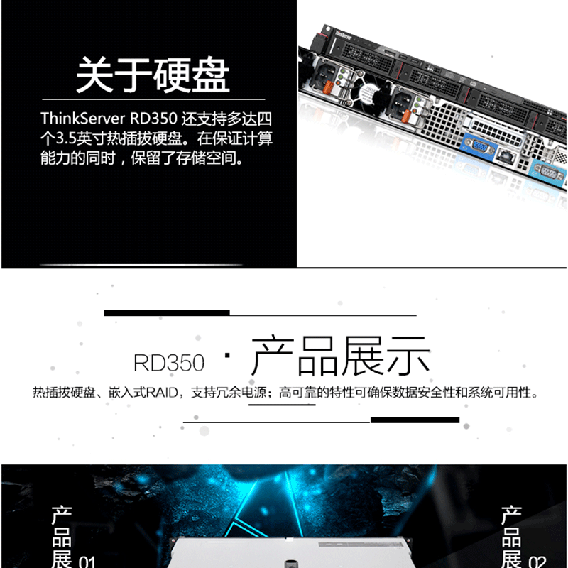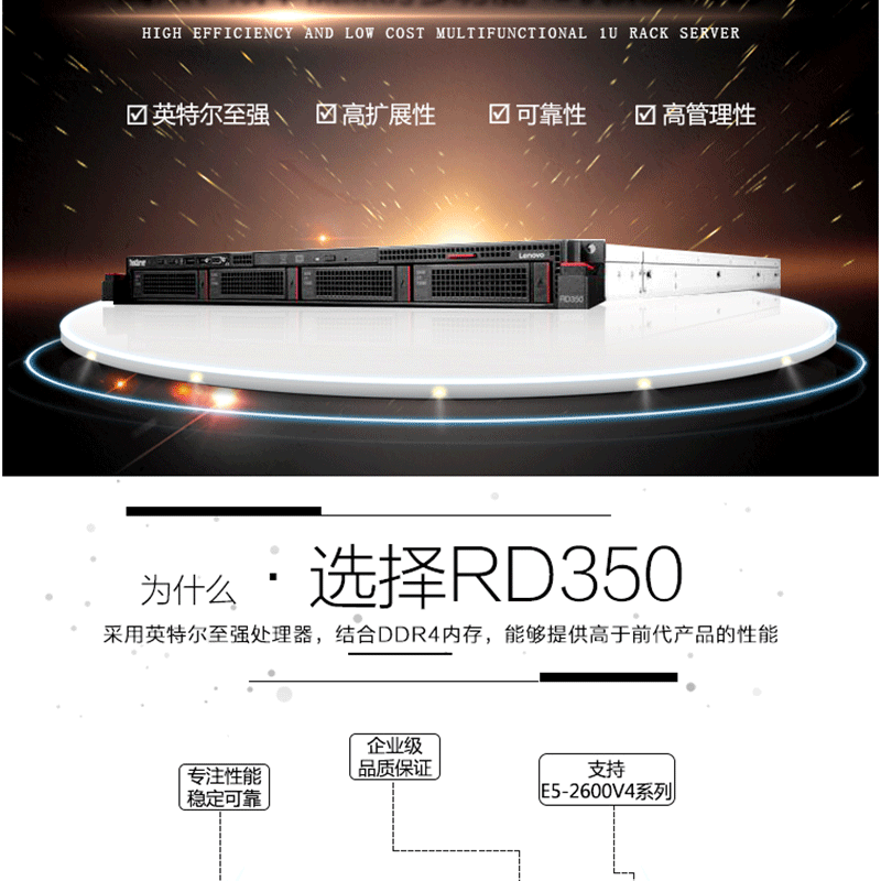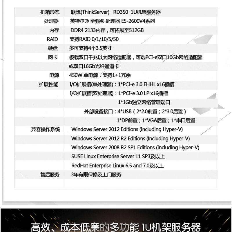 聯(lián)想(ThinkServer) RD350(E5-2609V4) 2路1U機架式服務(wù)器主機 8GB/300G固態(tài)/DVD