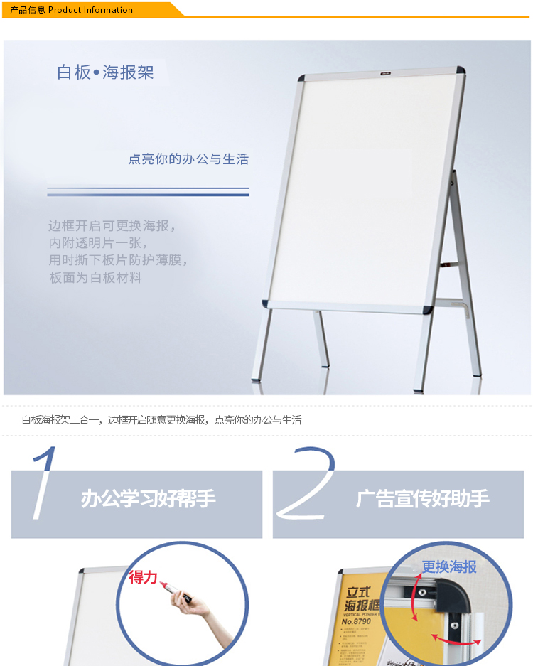 白板海報架二合一,邊框開啟隨意更換海報,點亮你的辦公與生活