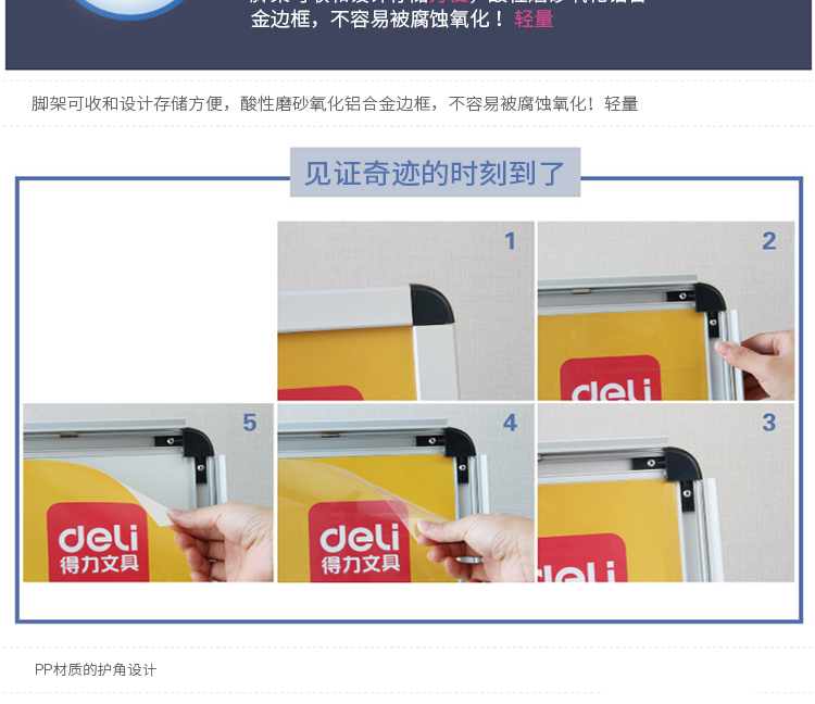 得力(deli) 8790 立式海報框白板594*841mm(銀色)