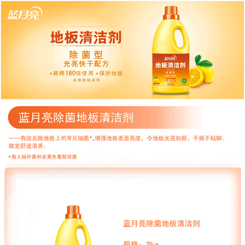 主體 凈含量(kg) 2 適用場景 客廳 適用范圍 強化地板 產(chǎn)品PH值 其他 包裝清單 藍月亮地板清潔劑2kg/瓶 × 1