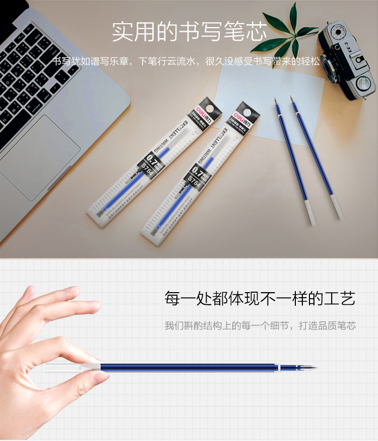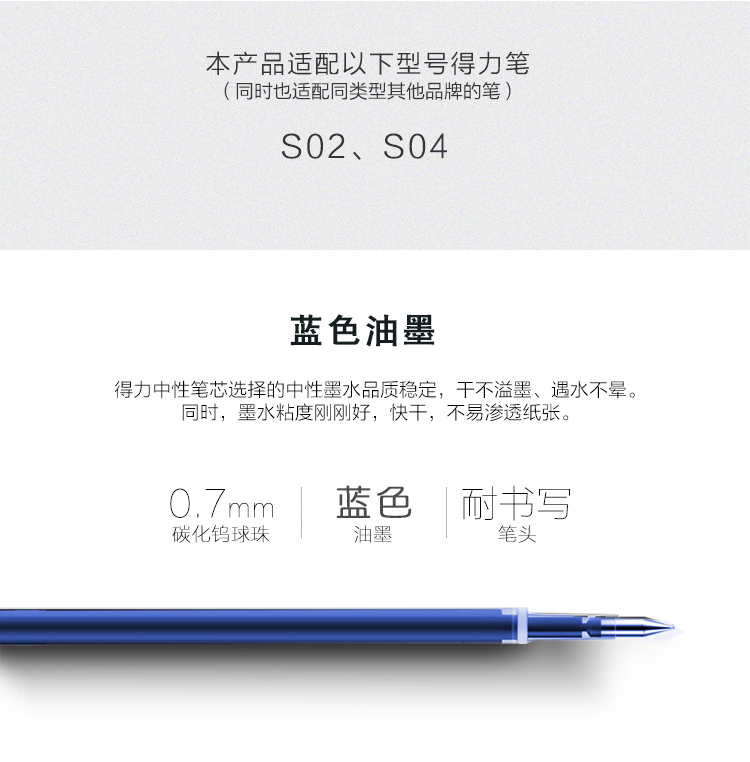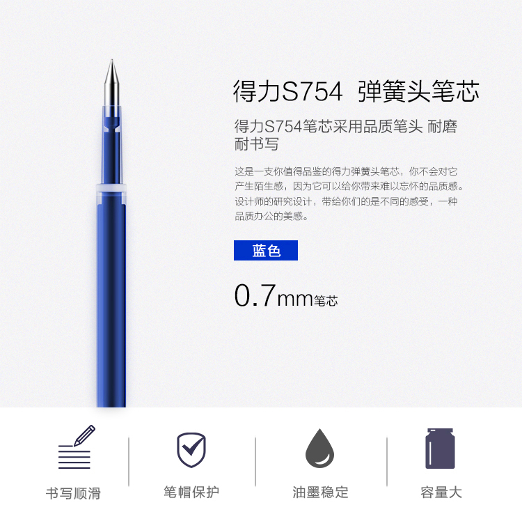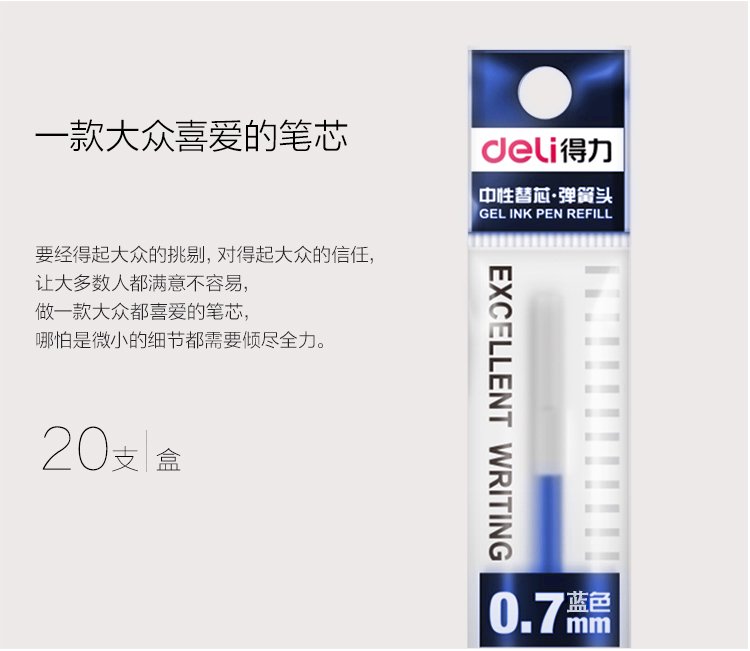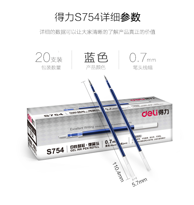 得力(deli)S754 中性筆芯 簽字筆芯0.7mm 20支/盒 (藍(lán)色)