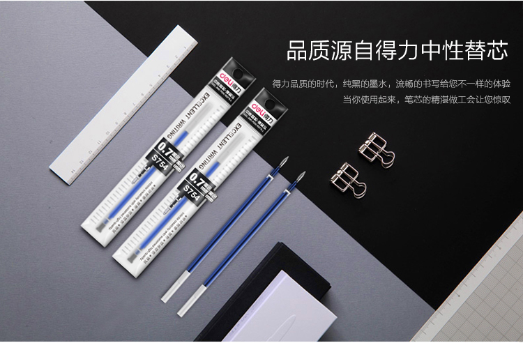 得力(deli)S754 中性筆芯 簽字筆芯0.7mm 20支/盒 (黑色)