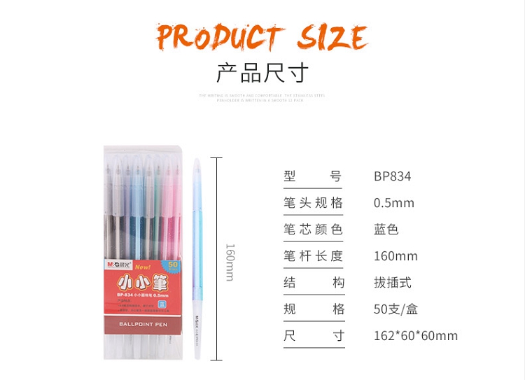 晨光(M&G) BP834 迷你細桿小小圓珠筆0.5mm 50支/盒
