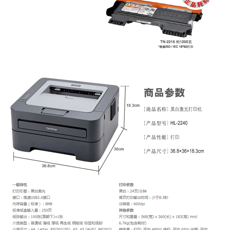 兄弟(brother) HL-2240 黑白激光打印機(jī) 24頁(yè)/分鐘