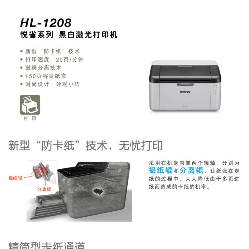 新型防卡紙技術(shù) 鼓粉分離 體積小巧 20頁/分鐘!A4打印幅面 ?
