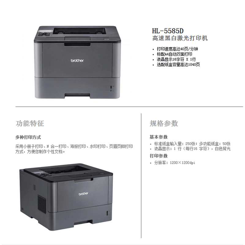 兄弟(brother) HL-5585D 黑白激光打印機(jī) 高速 自動雙面打印