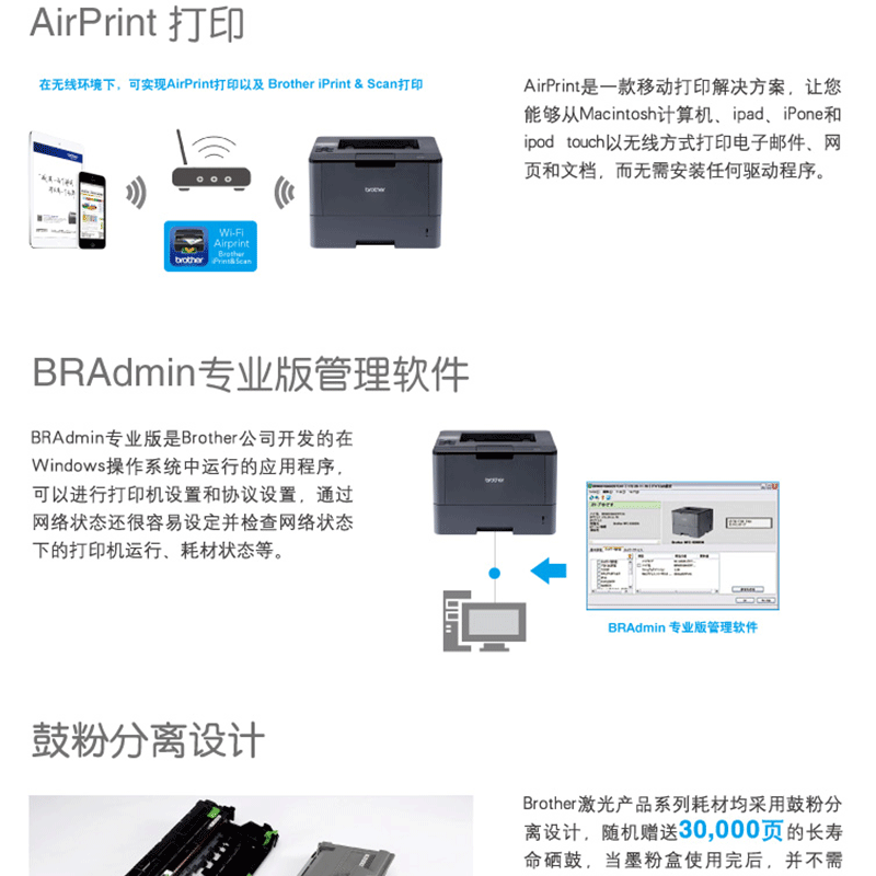 40頁(yè)/分鐘黑白打印盡享“暢”“快”,標(biāo)配有線網(wǎng)絡(luò)連接穩(wěn)定,支持A4自動(dòng)雙面打印 ?