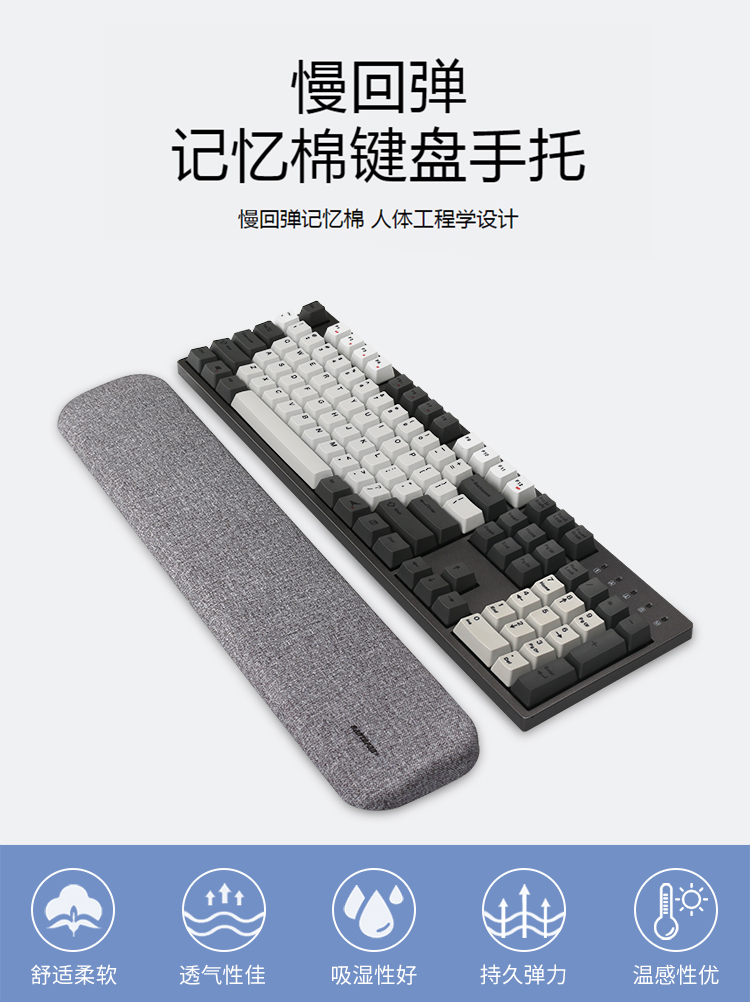 鐳拓( Rantopad )TOTO PRO記憶棉鍵盤托 護(hù)腕托 鎖邊手托(銀河灰)